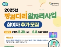 ‘2025년 징검다리 일자리 사업’ 참여자 추가 모집 포스터(사진=경기도)[경기뉴스탑(수원)=장도근 기자]경기도와 경기도일자리재단은 미취업 도민의 경력 형성과 취업 연계를 지원하기 위해 ‘2025년 징검다리 일자리 사업’ 참여자를 오는 6월 8일까지 추가 모집한다고 4일 밝혔다.이번 사업은 도내 공공기관 및 사회적 기업 등...
