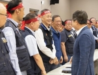 1일 오전 김동연 경기도지사가 경기지방노동위원회에서 열린 경기도 버스 노사 협상장을 방문하여 사측 관계자들과 인사를 하고 있다.(사진=경기도)[경기뉴스탑(수원)=장동근 기자]1일 새벽 경기도버스노동조합협의회와 경기도버스운송사업조합 간 최종 임금협상이 타결되면서 이날 예고된 경기도 시내버스 총파업이 철회됐다. 협상이 타...