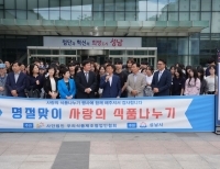 ㈔우리식품제조협업인협회는 9월 23일 성남시청 광장에서 ‘명절맞이 사랑의 식품 나누기 행사’를 열고, 41곳 사회복지시설에 1억2800만원 상당의 먹거리를 보냈다.(사진=성남시)[경기뉴스탑(성남)=박찬분 기자]성남지역 식품 관련 업체들이 추석 명절을 앞두고 1억2800만원 상당의 먹거리를 41곳 사회복지시설에 보내 온기를 전했다. ㈔...