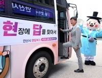 ‘현답버스’(사진=안산시)[경기뉴스탑(안산)=육영미 기자]이민근 안산시장이 시민과의 소통을 강화하고 현장에서 직접 해결책을 모색하기 위한 새로운 행정 모델 ‘현답버스’를 본격 가동했다.안산시는 9일, 이민근 시장과 담당 공무원이 25개 동을 순회하며 지역 현안을 청취하고 대응하는 ‘현장에 답을 찾아서, 현답버스...
