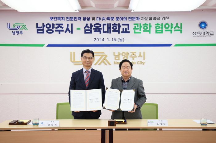 [경기뉴스탑(남양주)=이윤기 기자]남양주시는 지난 15일 시청 여유당에서 삼육대학교(총장 김일목)와 보건복지 분야의 전문인력 양성 및 다(多)학문 분야 자문을 위한 관학 협약을 체결했다고 16일 밝혔다.