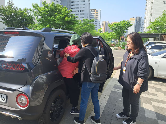 성남시에 사는 거동 불편 어르신이 병원에 가려고 부름카를 타고 있다.(사진=성남시 제공)