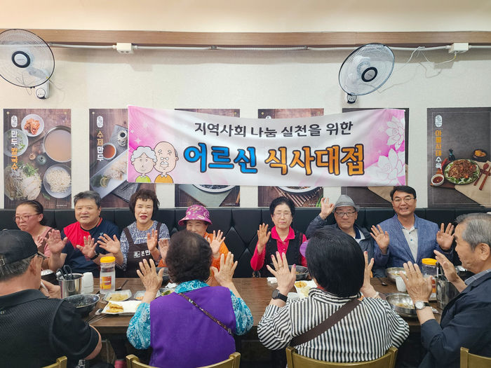 [경기뉴스탑(의왕)=장동근 기자]의왕시 부곡동에 위치한 본만두 의왕점(부곡초등3길 19)은 지난 29일 부곡동 어르신 30여 명을 모시고 점심 식사를 대접했다.