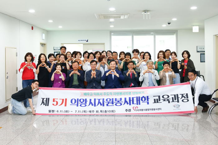 [경기뉴스탑(의왕)=장동근 기자]의왕시자원봉사센터는 지난 11일 자원봉사센터 교육장에서 ‘배우고 익혀서 주도적 자원봉사자 성장하기’라는 주제로 제 5기 자원봉사대학 입학식을 개최했다.