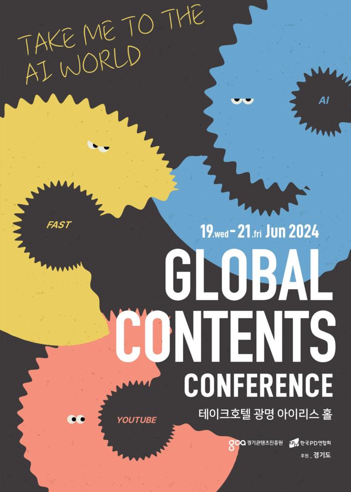 경기도가 후원하고 경기콘텐츠진흥원(원장 탁용석, 이하 경콘진)과 한국PD연합회(회장 김세원, 이하 PD연합회)가 개최하는 ‘2024 글로벌 콘텐츠 콘퍼런스’가 오는 19일부터 21일까지 3일간 경기도 광명 테이크 호텔에서 AI를 비롯한 다양한 주제를 통해 방송영상 산업의 현재를 진단하고 미래를 전망할 예정이다.