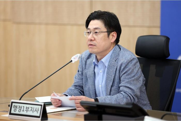 - 5월 16일 오후 경기도청 재난상황실에서 오병권 행정1부지사, 관계자 및 공무원 등이 참석한 가운데 제2차 360° 돌봄 TF 회의가 열렸다. 오병권 행정1부지사가 인사말을 하고 있다. (사진=경기도 제공)