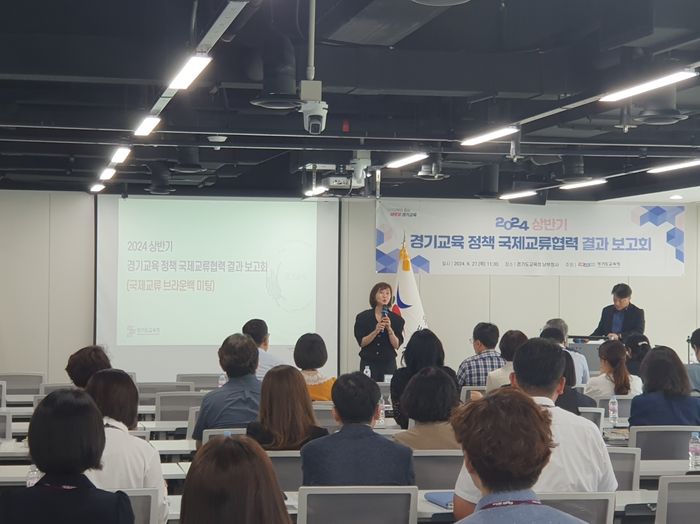 [경기뉴스탑(수원)=육영미 기자]경기도교육청이 국제교류 활동의 정책적 환류를 위해 ‘2024년 경기교육 정책 국제교류협력 결과보고회’를 27일 남부청사에서 실시했다.