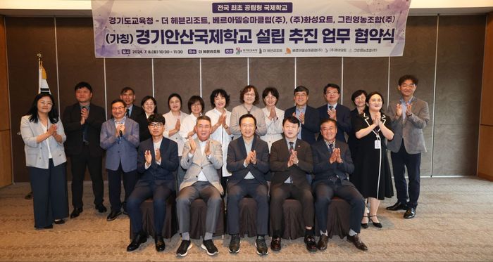경기도교육청은 이날 오전 안산 대부도 ‘더 헤븐 리조트’에서 (가칭)경기안산국제학교 지역특화 맞춤형 교육을 위해 지역 기업 4곳과 업무협약을 체결했다.