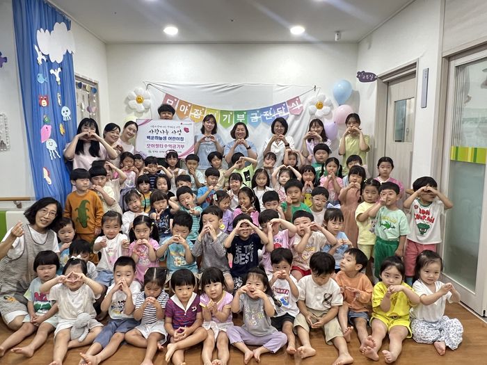 이날 전달한 성금은 백운하늘샘어린이집 원아들이 기부한 장난감 등 다양한 물건들로 열린 모아장터 시장놀이를 통해 마련한 수익금으로 마련했다.