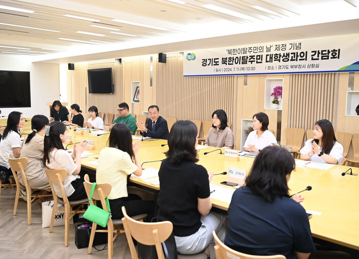 [경기뉴스탑(수원)=경기도가 제1회 북한이탈주민의 날(7월 14일)을 맞아 지난 11일 경기도청 북부청사에서 탈북청년 대학생들과의 간담회를 개최했다.
