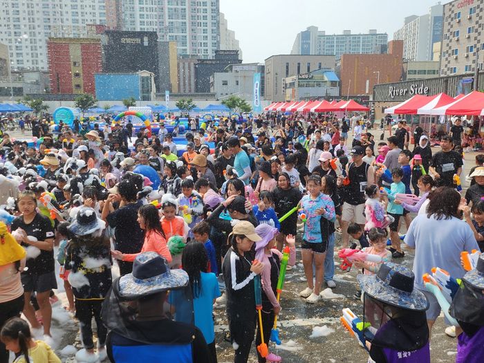 [경기뉴스탑(시흥)=육영미 기자]시흥시 월곶동 마을축제추진위원회는 지난 13일 월곶어울림센터 옆 나눔주차장에서 ‘제4회 짠내나는 월곶물총축제’를 개최했다.
