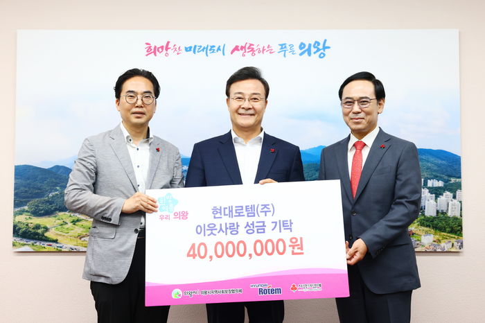 전달식에는 김성제 의왕시장을 비롯해 이용배 현대로템 대표이사, 김효진 경기공동모금회 사무처장, 신승희 지역사회보장협의체 민간위원장 등이 참석했다.