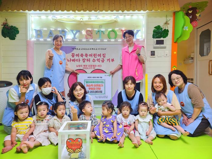 [경기뉴스탑(남양주)=이윤기 기자]남양주시 꿈이쑥쑥어린이집(원장 김경화)은 지난 19일 ‘아나바다 장터’ 수익금 200,800원을 남양주시 사회복지관 북부희망케어센터(센터장 전정수)에 전달했다.