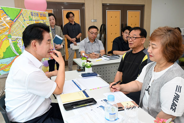 ▶사진 설명 1~4번: 김동근 시장이 8월 2일 흥선동행정복지센터에서 ‘현장시장실’을 열고 주민들과 소통하고 있다.