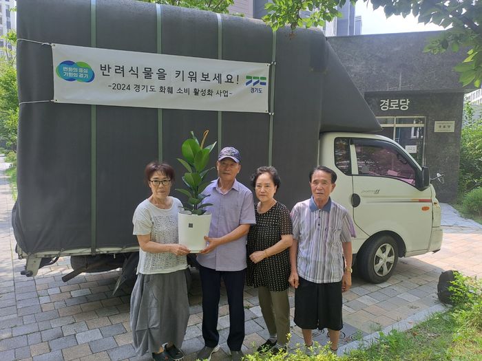 지난 1일 의왕시 백운해링턴플레이스 1단지 경로당에 반려식물을 지급한 것을 시작으로 경기도는 8월부터 11월까지 월 1회 총 4회에 걸쳐 무료로 나눠줄 예정이며, 올해 받지 못한 경로당은 내년부터 순차적으로 지급된다. 이를 위해 도는 지난 5월 공모를 통해 공급 사업자를 선정했으며, 100% 경기도산 식물이 공급된다.
