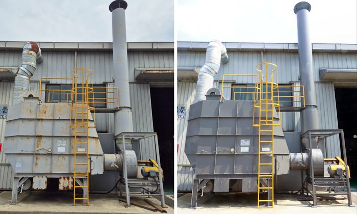 반월·시화산업단지 내 노후 대기오염방지시설 도색 전,후(사진=경기도 제공)