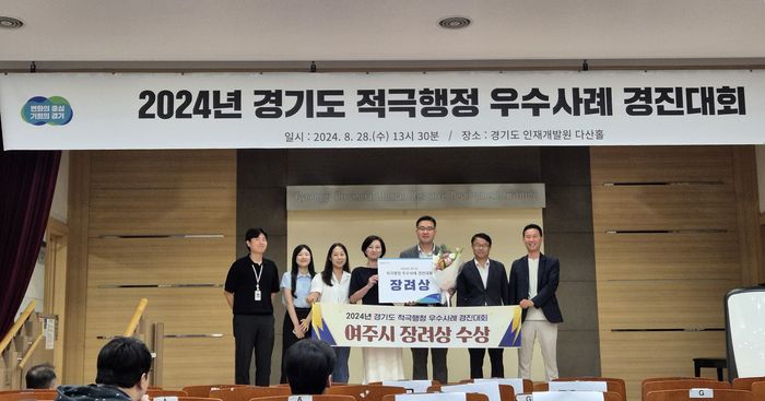 [경기뉴스탑(여주)=박찬분 기자]여주시는 지난 8월 28일, 경기도 인재개발원에서 열린 ‘2024년 경기도 적극행정 우수사례 경진대회’에서 ‘중첩규제 속 새로운 투자유치의 길을 만드는 여주시!’ 사례로 장려상을 수상했다고 밝혔다.