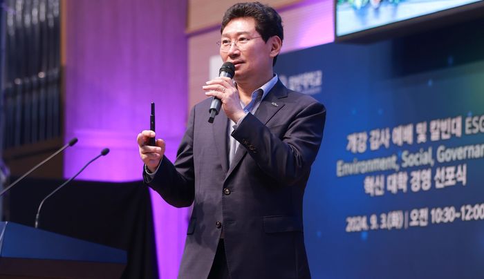 [경기뉴스탑(용인)=박찬분 기자]이상일 용인특례시장은 5일 기흥구 마북동 칼빈대학교 강당에서 개강 수련회의 일환으로 마련된 ‘ESG 혁신人(IN) 지역 커뮤니티’ 특별 강사로 초청받아 강연했다.