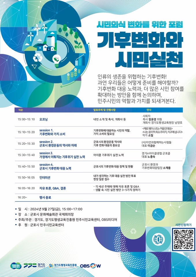 기후 환경에 관심 있는 경기도민 누구나 행사에 참여할 수 있으며 포럼 포스터 내 QR 코드 스캔을 통해 사전 신청할 수 있다.
