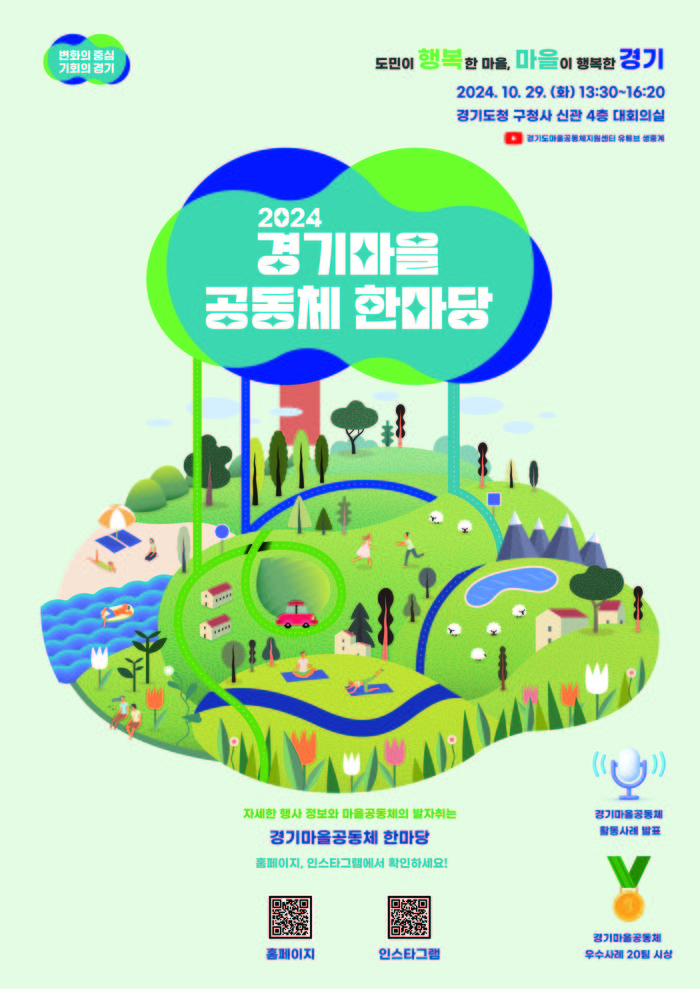 2024 경기마을공동체 한마당 관련 자세한 내용은 행사 공식 누리집(ggcommunity.or.kr) 또는 인스타그램(@gg.maeul.community_official/)에서 확인할 수 있다.