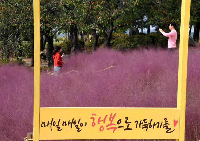 무엇보다 이시기 가장 인기가 높은 곳은 분홍빛으로 물든 핑크뮬리밭이다. 핑크뮬리 사이로 조성된 포토스폿에서 가족과 연인, 친구들이 사진으로 추억남기기 한창이다.