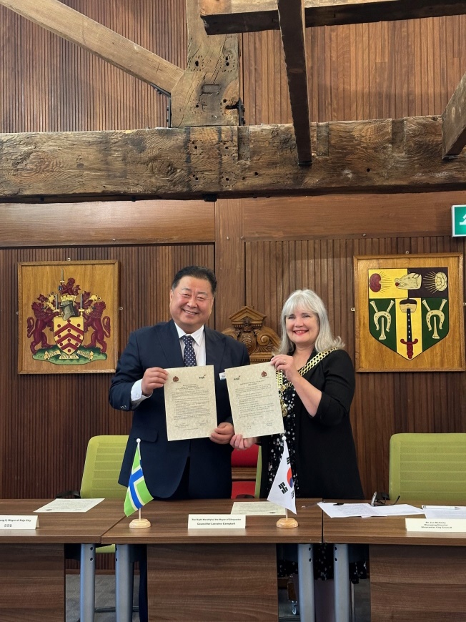[경기뉴스탑(파주)=이윤기 기자]파주시는 11월 5일, 영국 글로스터시와 ‘자매도시 결연’을 체결했다. 이번 체결식은 ▲교육교류 ▲경제교류 ▲스포츠 교류 등의 분야에서 상호협력을 증진할 것을 목적으로 한다.
