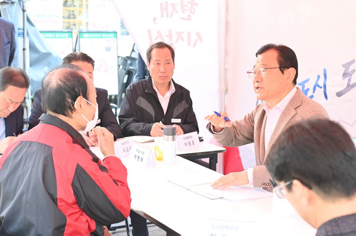 이 시장은 이날 신장동 GS마트 주차장에서 진행된 이동시장실을 통해 20여명의 시민들과 지역 현안에 대해 자유롭게 논의했다.