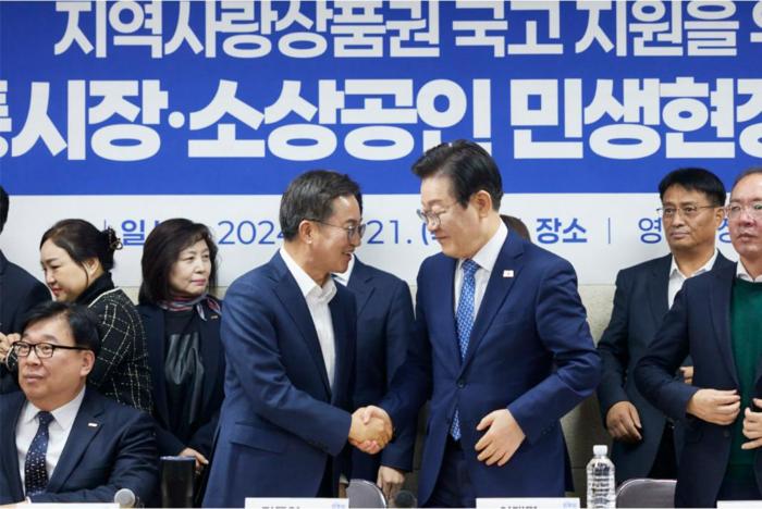 21일 오전 김동연 경기도지사가 수원 못골시장․영동시장 민생현장 방문 및 전통시장․소상공인 간담회를 했다. |
