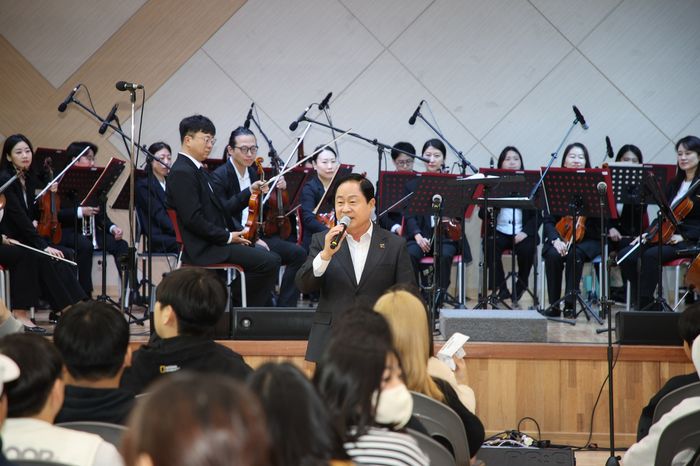 이번 행사는 해설이 있는 오케스트라 공연 ‘학교로 찾아가는 오케스트라’에 시립합창단이 함께해 한층 더 풍성하고 특별한 음악 경험을 제공하는 자리였다.