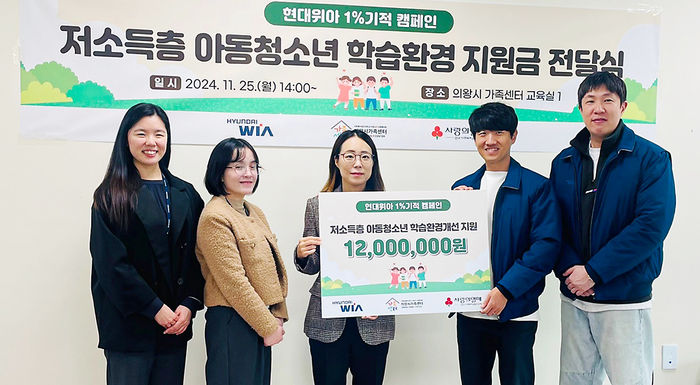 의왕시가족센터 박희진 센터장은 “의왕시 저소득, 한부모, 다문화가정의 아동과 청소년들의 안정적인 학습환경을 위해 지원을 아끼지 않으신 현대위아 임직원분들께 진심으로 감사드린다”며 “앞으로도 복지 사각지대에 놓인 저소득 가정을 위한 지속적인 지원을 위해 노력하겠다”고 말했다.