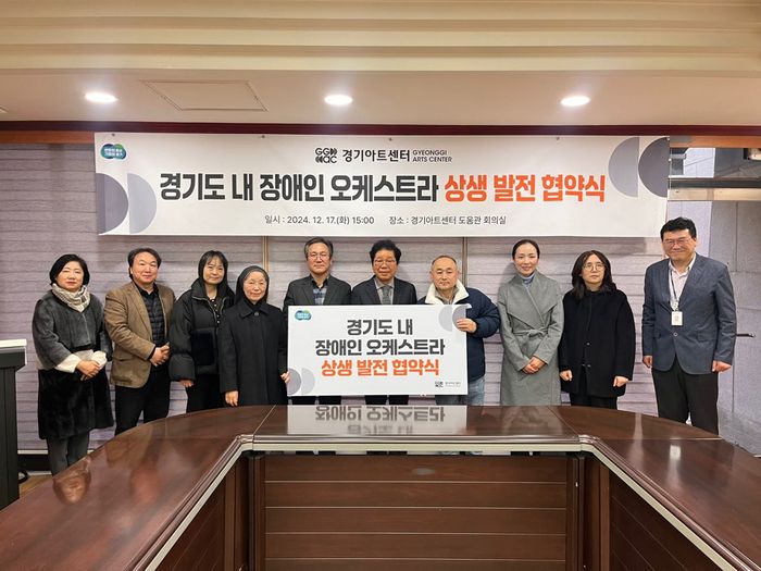[경기뉴스탑(수원)=장동근 기자]장애인으로 구성된 ‘경기 리베라 오케스트라’를 운영하는 경기아트센터와 다른 민간‧공립 장애인 오케스트라를 운영하는 9개 단체․기관이 지난 17일 경기아트센터에서 ‘경기도 내 장애인 오케스트라 상생 발전’을 위한 협약을 체결했다.