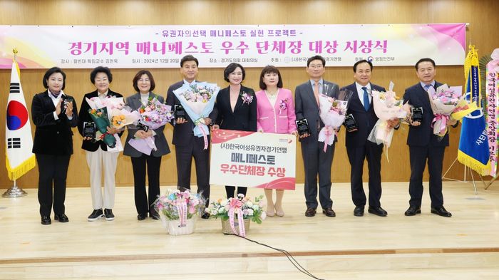 김보라 안성시장이 지난 20일 사단법인 한국여성유권자경기연맹이 주관하는 2024 매니페스토 시상식에서 ‘우수 단체장 대상’을 수상했다./좌측 3번째(사진=안성시)