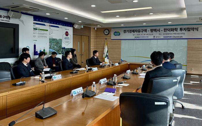 [경기뉴스탑(평택)=전순애 기자]경기경제자유구역청이 평택 포승지구에 1,300억 원이 투자되는 반도체용 첨단소재 생산시설을 유치했다. 반도체·디스플레이용 현상액(TMAH)을 생산하는 한덕화학이 평택 포승지구에 수도권 생산거점을 조성하기로 한 것이다.
