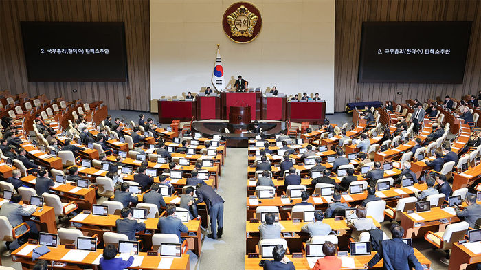 앞서 우원식 국회의장은 이날 본회의에서 한덕수 대통령 권한대행 국무총리에 대한 탄핵소추안을 재적의원 과반수 찬성을 가결 요건으로 표결에 부쳤다.