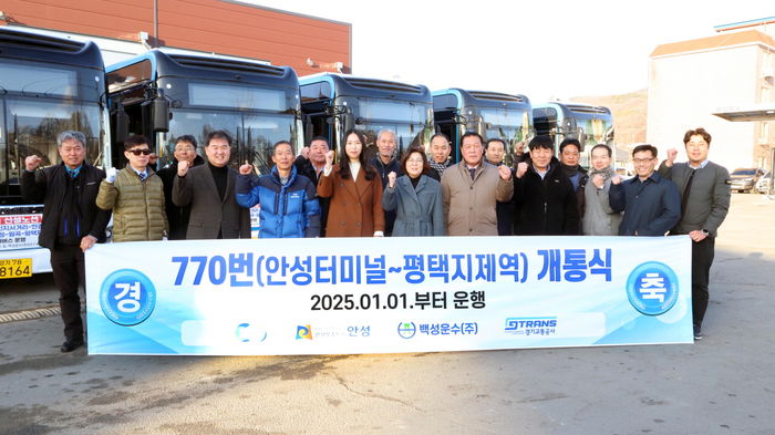 김보라 안성시장은 “770번 버스 운행으로 시민들의 대중교통 이용 편의성이 증가할 것으로 생각되며, 앞으로도 시민들이 편리하게 대중교통을 이용할 수 있는 대중교통 정책을 추진하겠다.”고 밝혔다.