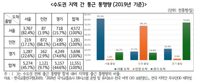 수도권 지역 간 통근 통행량/2019년 기준(사진=경기도)