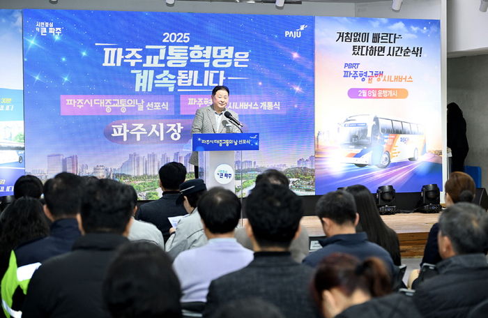 한편 이날 대중교통의 날 선포 직후 파주형 급행 시내버스(PBRT) 개통식도 진행됐다. 2월 8일부터 운행을 시작하는 파주형 급행 시내버스(PBRT)는 적성, 파평, 문산, 월롱, 금촌, 법원, 연풍, 광탄 지역에서 정차 지점을 최소화해 지티엑스(GTX)운정중앙역으로 최대한 빠르게 이동하는 신개념 교통수단으로, 북파주 지역의 서울 접근성이 향상될 전망이다.