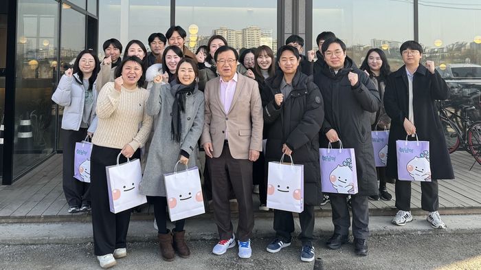하남시가 경기도 31개 시·군 중 최고 수준의 출산 인사 가점을 도입하고, 공직사회가 출산 친화적 문화를 선도할 수 있도록 지원한다. 사진은 지난해 이현재 하남시장이 신혼 공무원들의 행복한 결혼생활을 응원하는 오찬을 진행한 후 기념 촬영을 하고 있다.(사진=하남시)