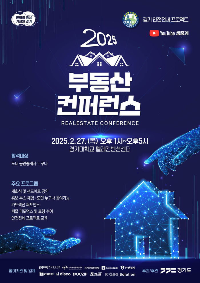 [경기뉴스탑(수원)=장동근 기자]경기도는 전세 사기 예방과 안전한 부동산 거래 환경 조성을 위해 오는 27일 오후 1시 수원 소재 경기대학교 텔레컨벤션센터에서 경기 안전전세 프로젝트 ‘부동산 컨퍼런스 2025’를 개최한다.
