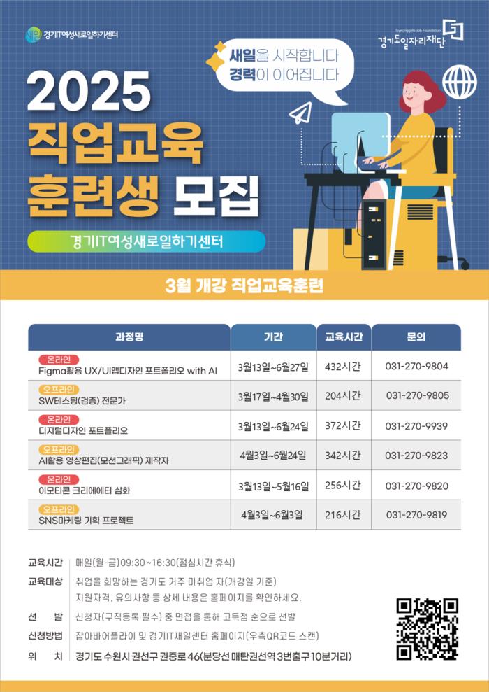 [경기뉴스탑(수원)=전순애 기자]경기도일자리재단 경기IT새일센터는 정보기술(IT) 분야 취업을 희망하는 도내 구직자를 대상으로 3월부터 직업교육 훈련을 운영한다.