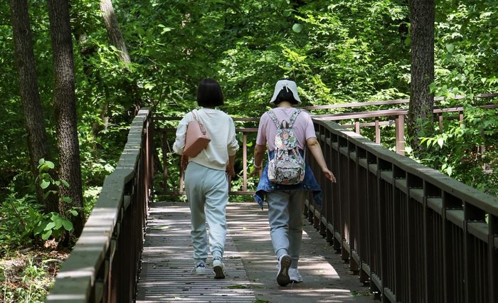 시민들이 무릉도원수목원 누구나숲길을 산책하고 있다.(사진=부천시).