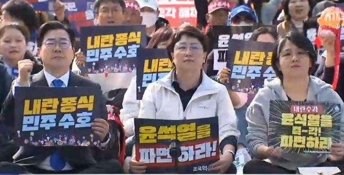더불어민주당 등 5개 야당이 15일 윤석열 대통령 탄핵심판 최종 결론이 임박한 가운데 시민들과 함께 장외 여론전을 벌이고 있다.(사진=MBC뉴스 캡처)