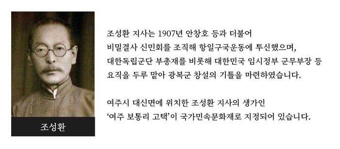 여준 지사는 용인 출신 독립운동가로 1906년 이상설과 함께 북간도 용정에 서전서숙을 설립해 교육을 통한 구국운동을 전개했다. 이후 만주로 망명해 신흥무관학교 교장으로 독립군 양성에도 힘썼으며, 1918년 대한독립선언서를 발표한 39인 중 1인이기도 하다.