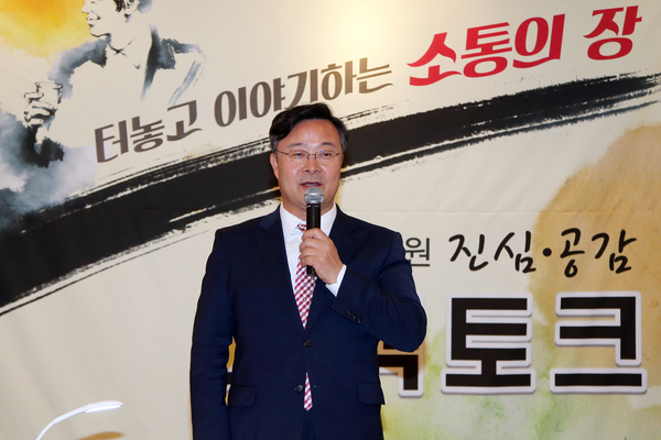 김성제 의왕시장은 2일 시청 구내식당에서 열린‘터 놓고 이야기하는 소통의 장, 치맥토크’행사에 참석했다. 6급 무보직이하 직원들을 대상으로 열린 치맥토크는 이날을 마지막으로 총 6회에 걸쳐 진행됐으며, 이날 행사에는 임기제 직원들이 참석한 가운데 개인 건의사항, 시정질문 등 다양한 주제에 대해 진솔한 이야기를 나눴다.