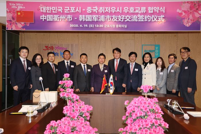 [경기뉴스탑(군포)=장동근 기자]군포시는 4월 19일, 2025년 군포철쭉축제를 축하하기 위해 방문한 중국 저장성 취저우시와 바둑을 중심으로 하는 우호교류 협약을 체결했다고 밝혔다.