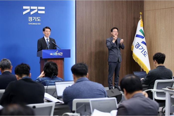 30일 오전 브리핑룸에서 김성중 행정1부지사가 K-컬처밸리 관련 브리핑을 하고 있다.(사진=경기도)