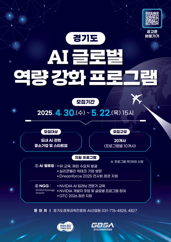 프로그램은 ‘AI 밸류업’과 ‘NGG(NVIDIA Gyeonggi Growth)’ 총 두 개로 구성되며, 주제마다 10개 기업을 선정해 맞춤형 글로벌 진출 기회를 제공한다.