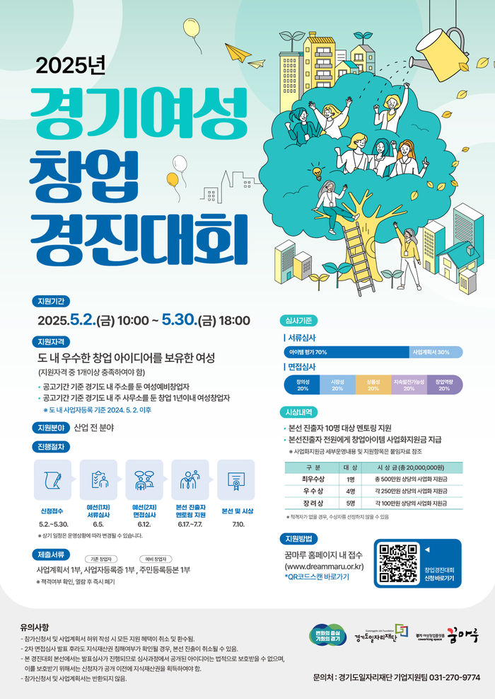 기타 자세한 사항은 여성창업플랫폼 꿈마루 누리집 또는 일자리재단 기업지원팀(031-270-9774)으로 문의하면 된다.