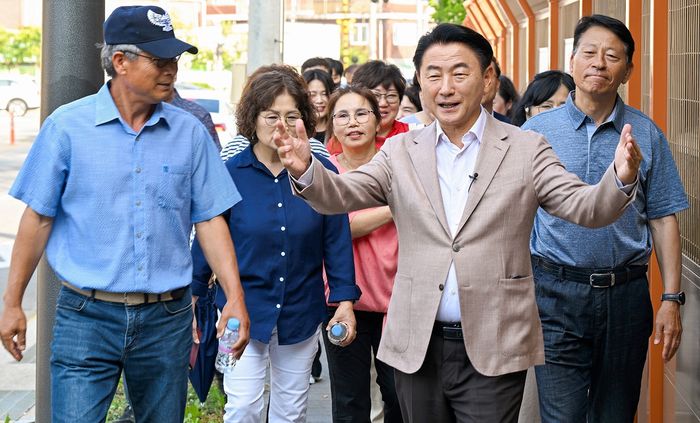 김동근 시장이 6월 9일 주민들과 CRC 통과도로 전구간(1km)을 걸으며 CRC의 과거와 미래를 나누는 시간을 가졌다.(사진=의정부시)