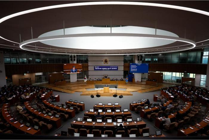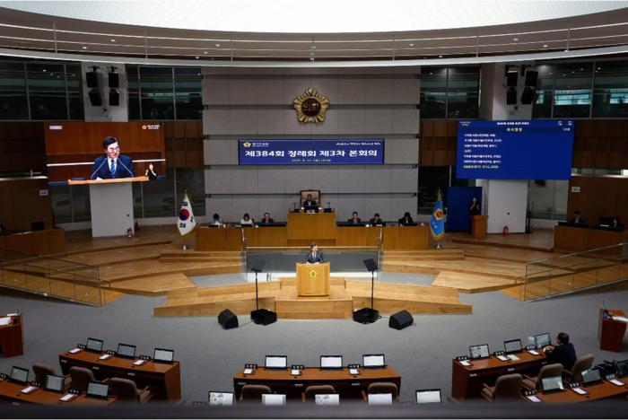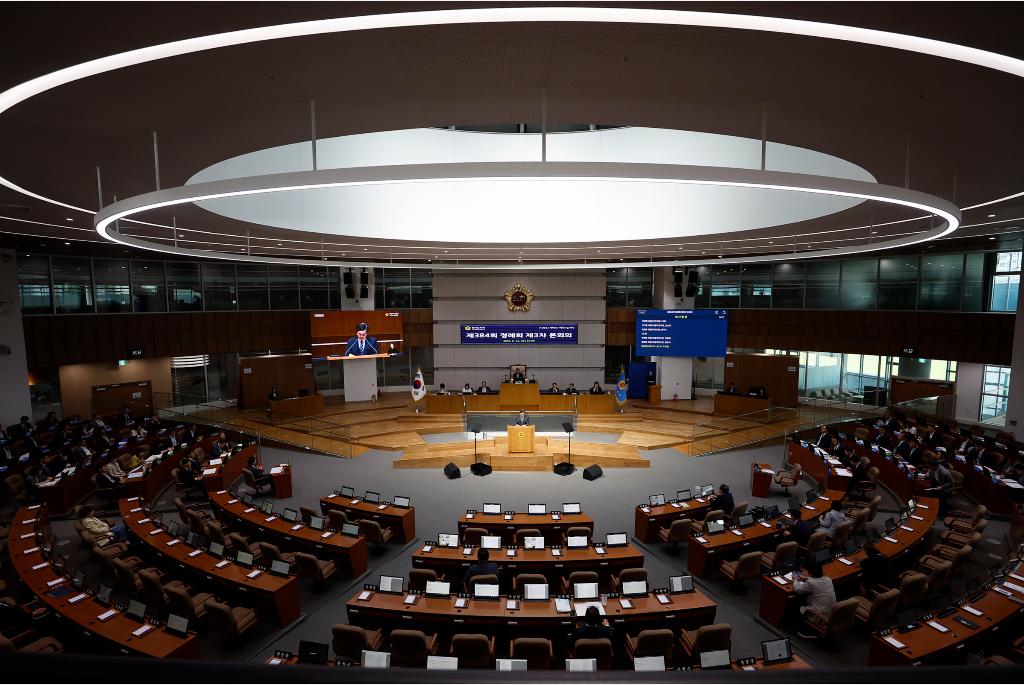 [경기뉴스탑(수원)=장동근 기자]12일 오후 경기도의회 본회의장에서 김동연 경기도지사, 김규창 경기도의회 부의장 및 도의원들이 참석한 가운데 제384회 정례회 3차 본회의가 열렸다.(사진=경기도)